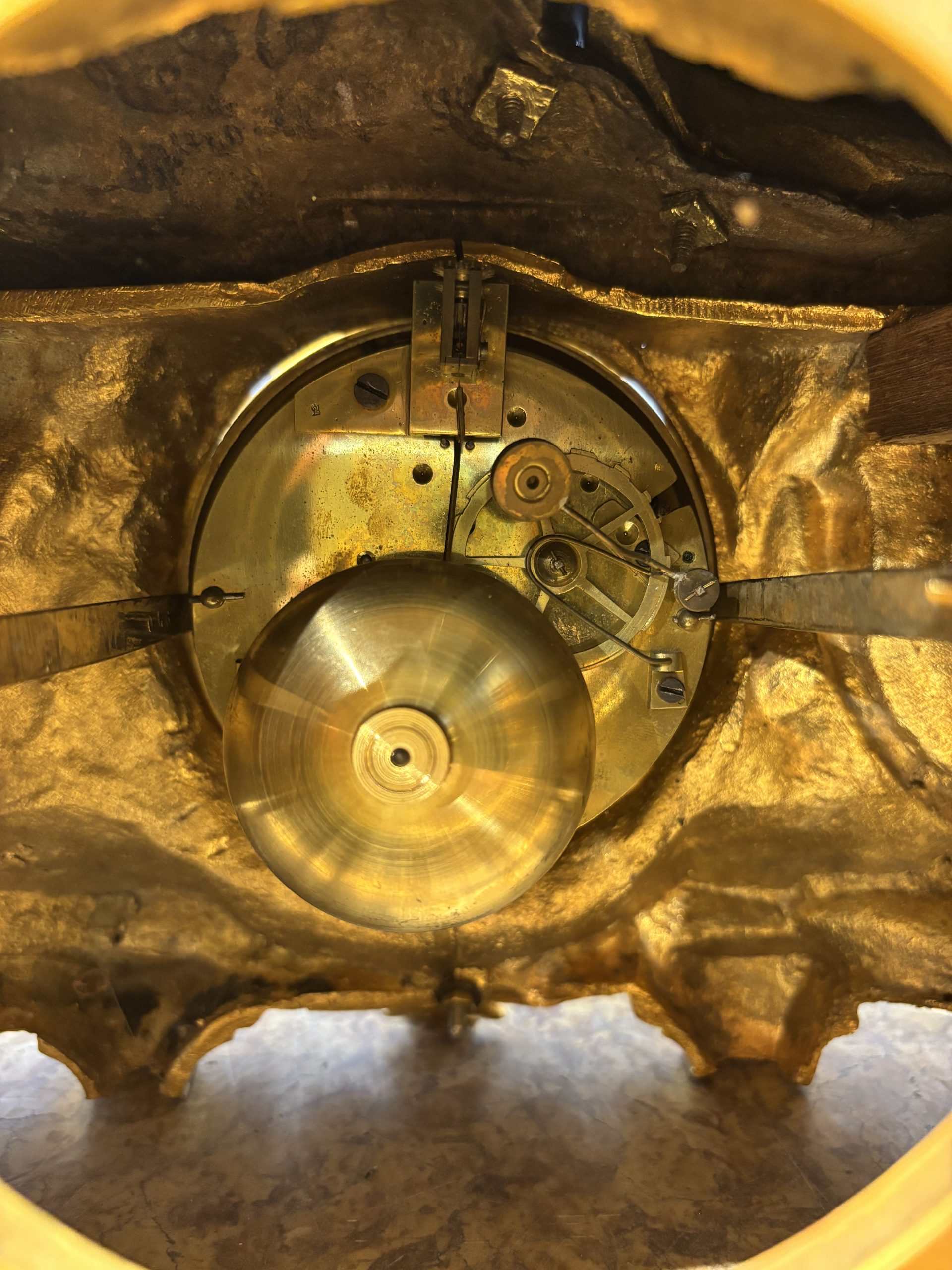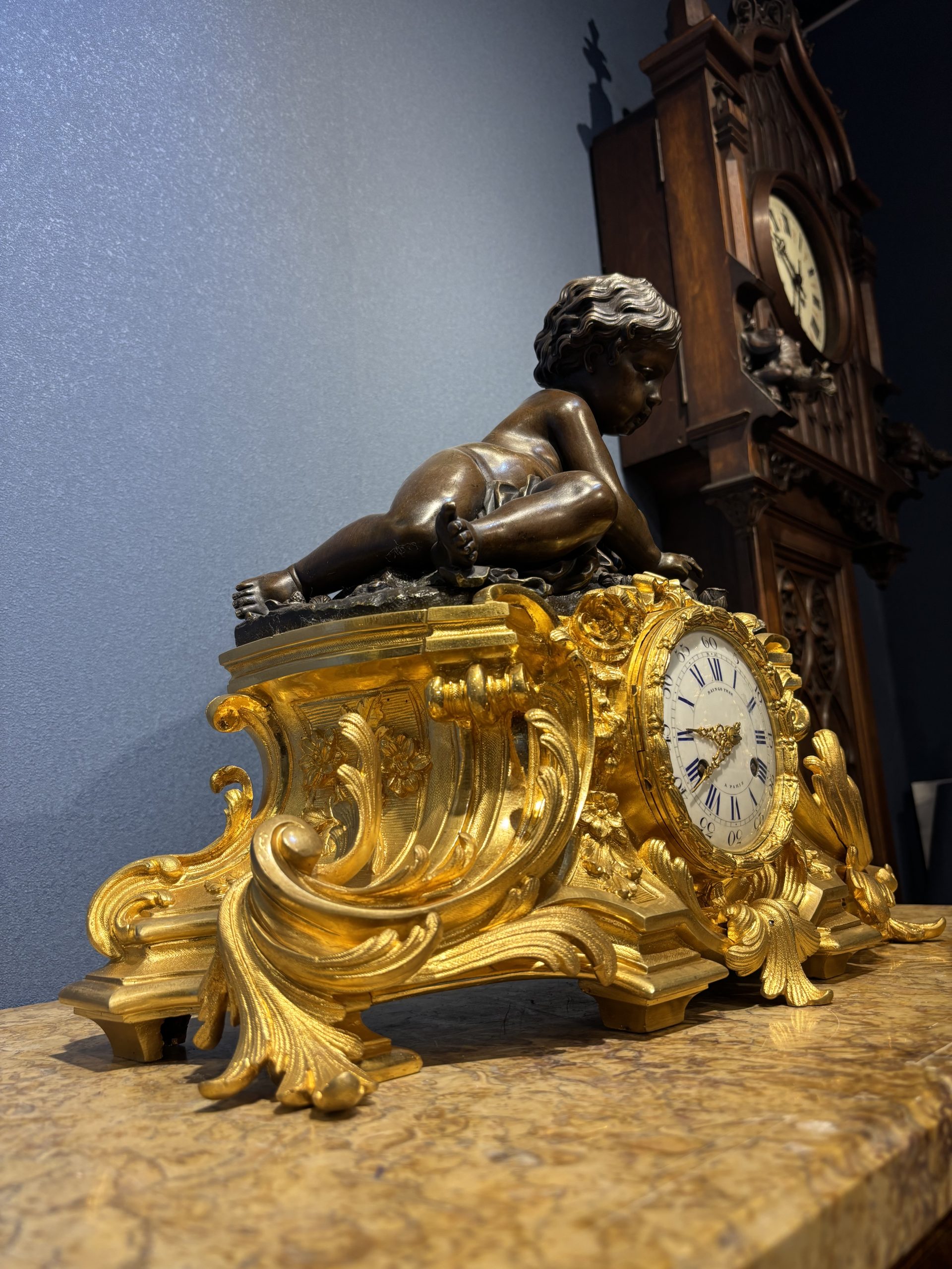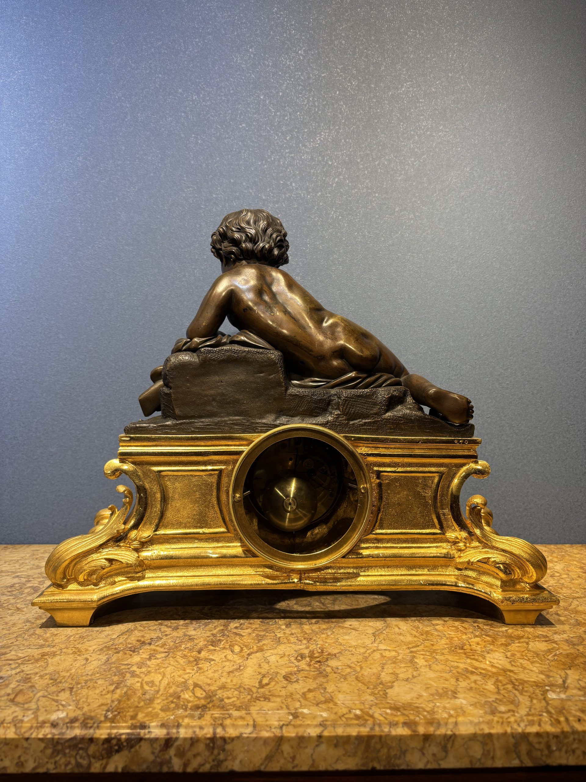 • Bức tượng mô tả “Thiên thần nhỏ đang đang nghỉ ngơi sau những giây phút hoạt động, lô đùa” vào khoảng năm 1860. Tác phẩm được làm bằng đồng thau, đồng đen mun của Henri Picard, Ông được biết đến là người thợ chế tác và mạ vàng nổi tiếng ở Paris (1831-1864), Ông làm việc cho nhiều nhân vật quan trọng, bao gồm cả Hoàng đế Napoleon III. Vì vậy, các tác phẩm của ông rất nổi tiếng và giá trị cao.