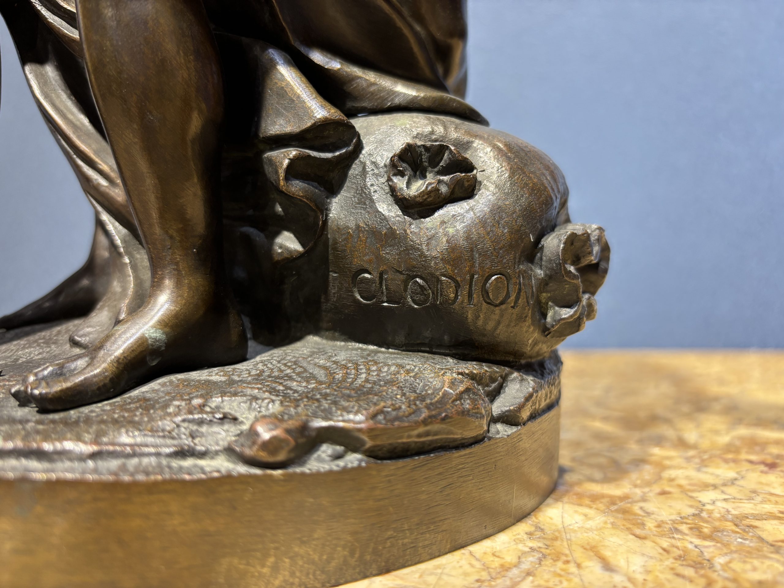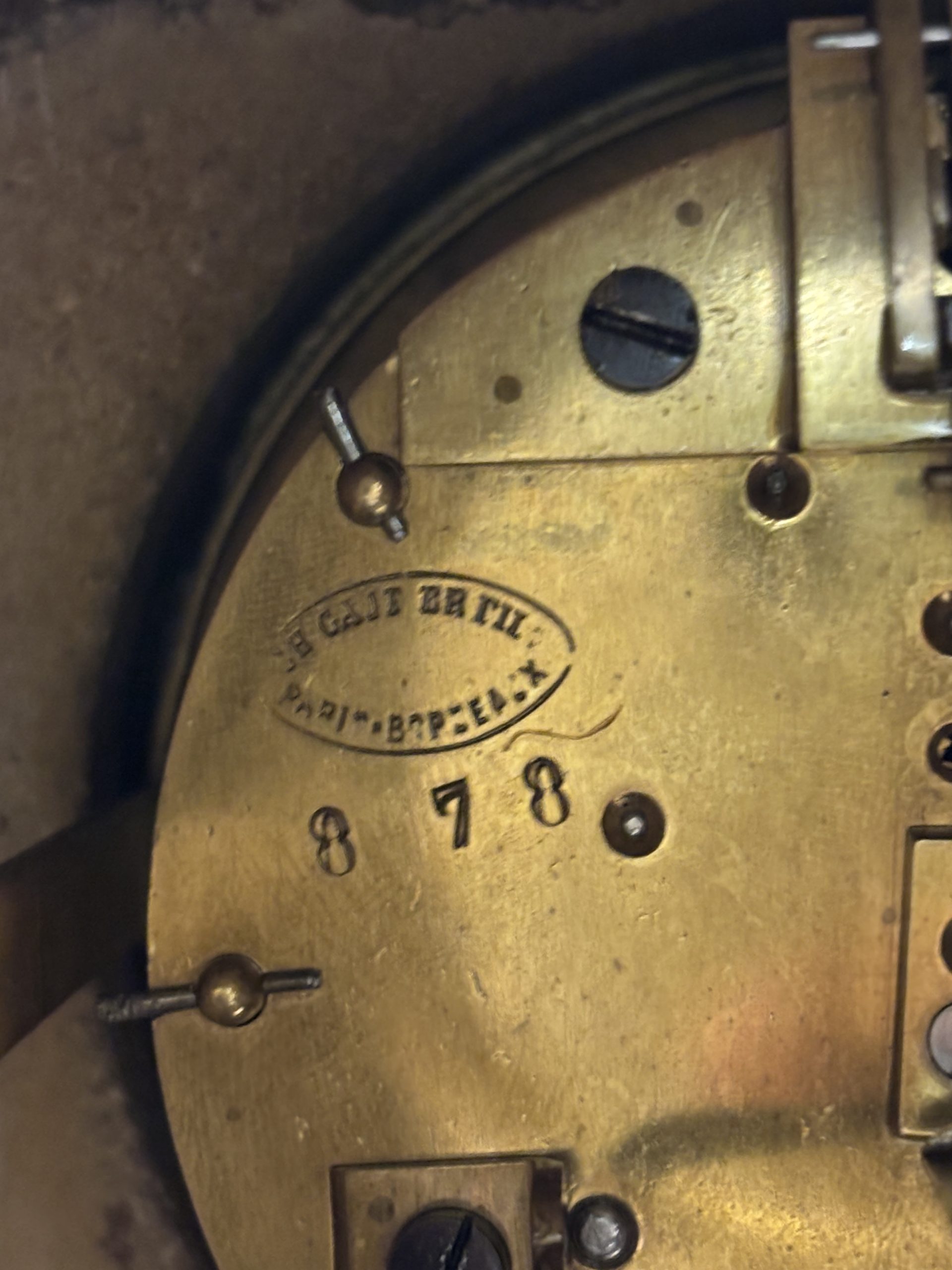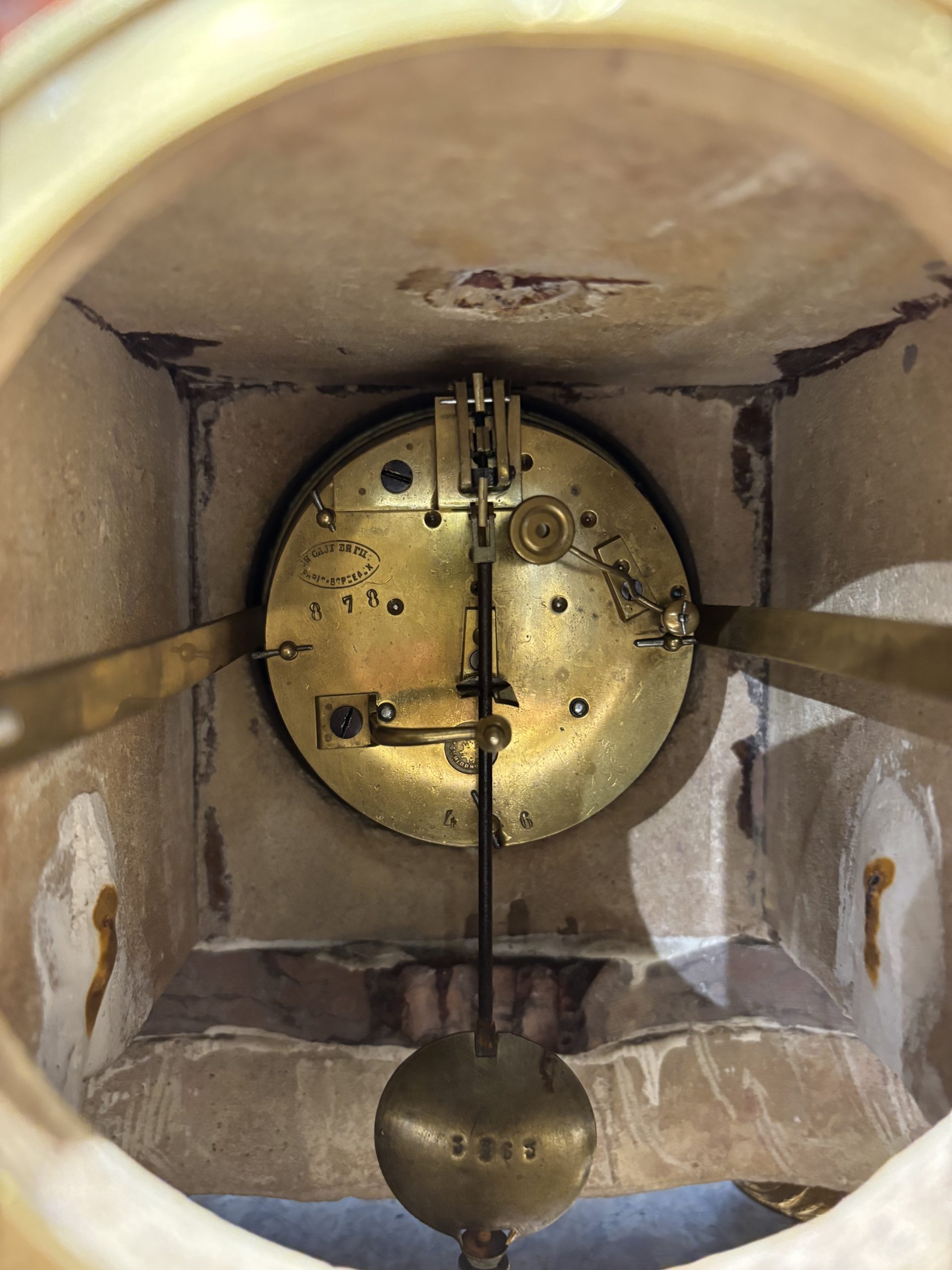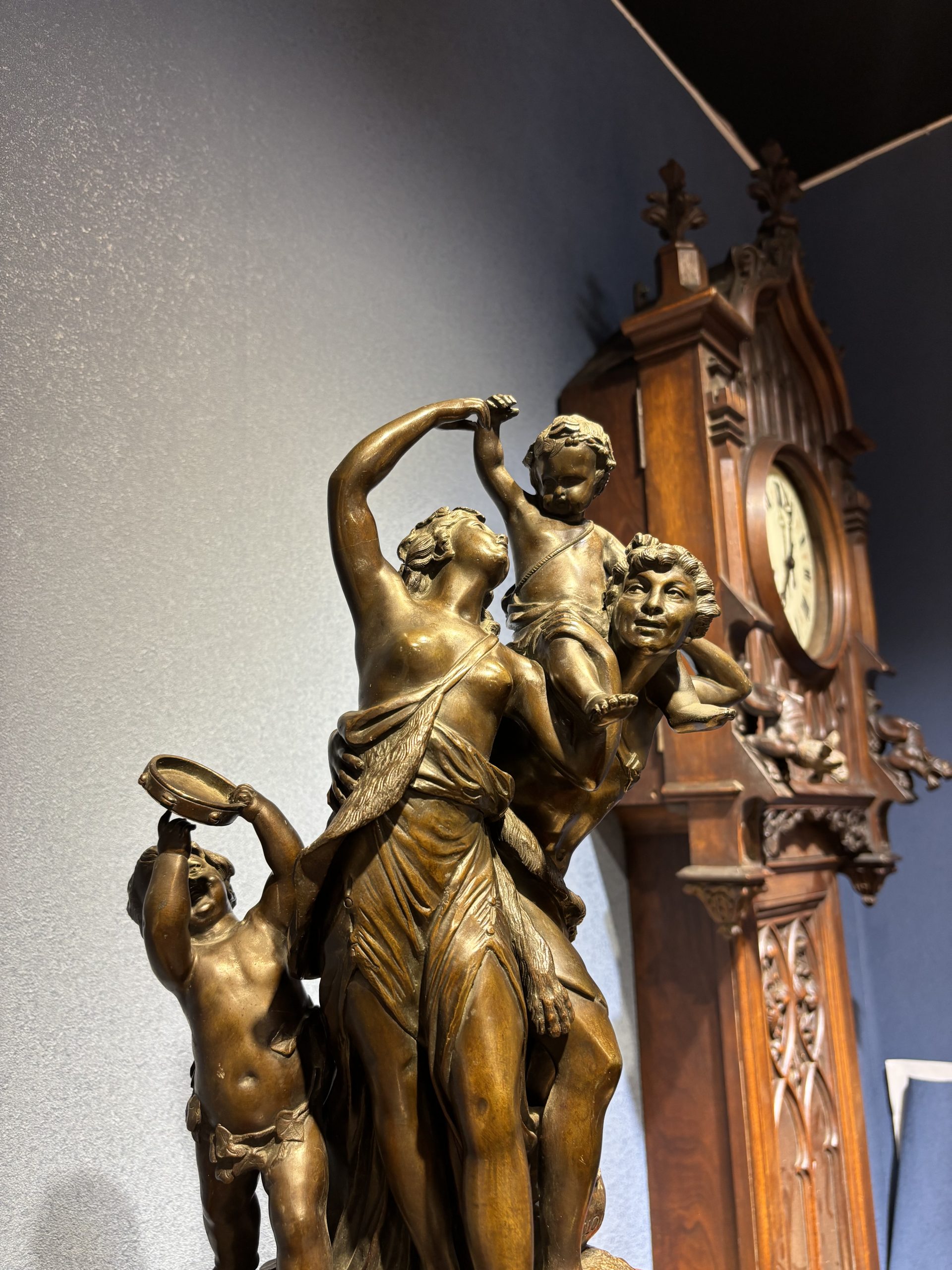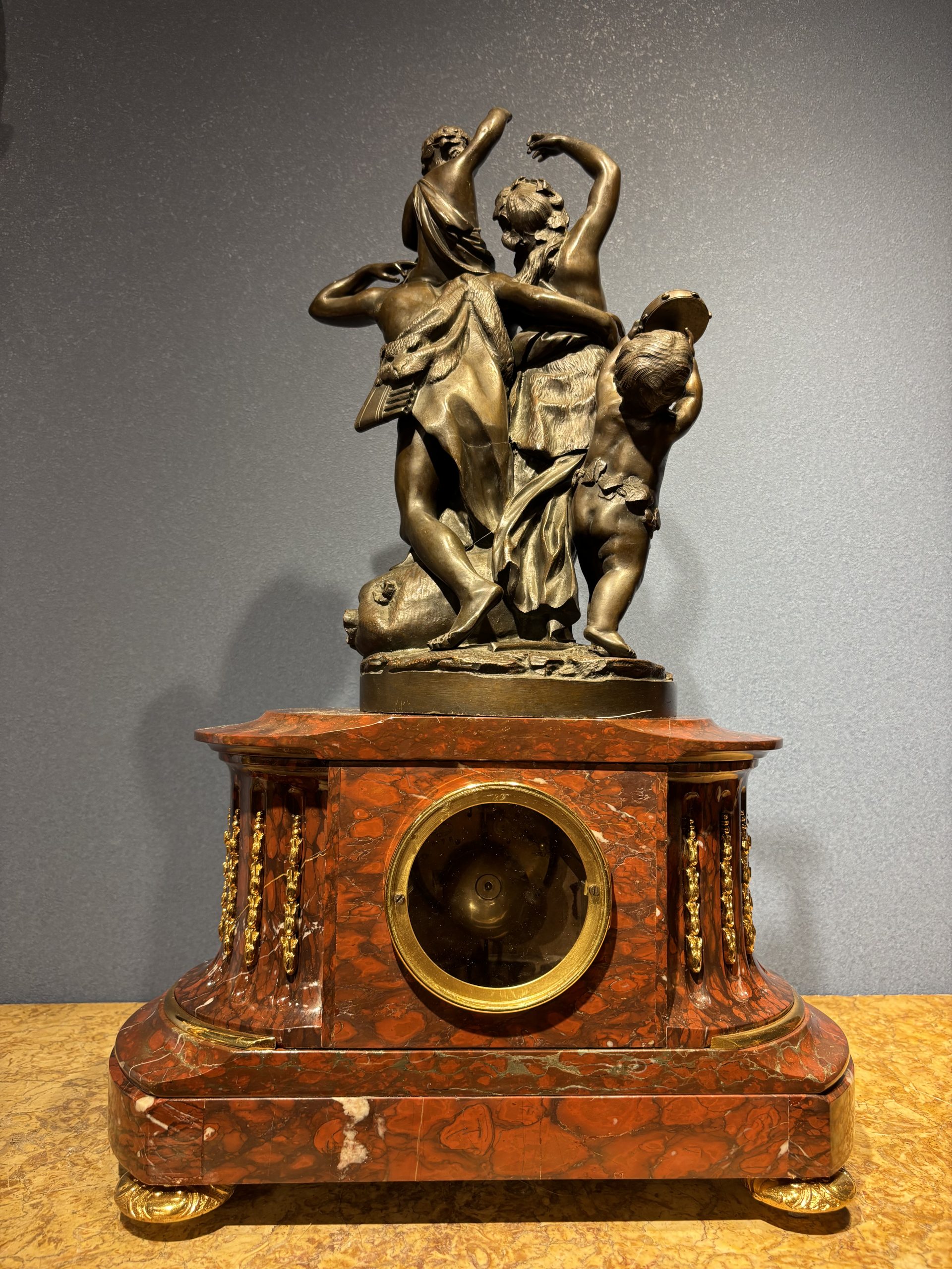 – Tượng được tác giả điêu khắc bằng đồng thau, màu đen mun cùng với sự kết hợp với đá cẩm thạch đỏ vân, chi tiết mặt số mạ vàng lắc kê và sử dụng bộ máy cơ khí hoàn hảo, đặc biệt có phần chiện đạt “Huy chương danh dự cao quý” vào năm 1880 của thương hiệu Japy.